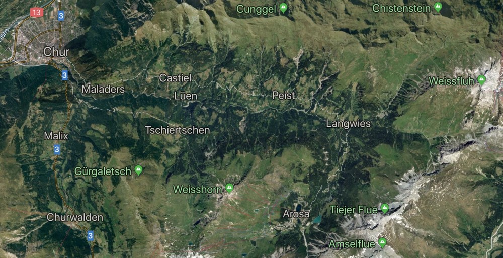 Eine der schönsten Erinnerungen aus meiner Jugend ist das Schanfigg. Wie schön war es, jedes Jahr mehrmals nach Pagig und Arosa zu fahren. Egal, zu welcher Jahreszeit. Die Kurven, die engen Bergstrassen (mit ss). Im Winter Riesenmengen von Schnee, schon frühmorgens die Schneefräsen, dann das Horn der Postbusse… Und im Sommer die endlosen Wanderwege, die Eichhörnchen, die Almen, Heuspeicher und Brunnen mit klarstem Quellwasser, die weltbesten Nusskipferln aus Langwies, der Tante-Emma-Laden in St. Peter, die SBB nach Arosa hoch… Aber vor allem: Der Geruch der Wälder dort oben!